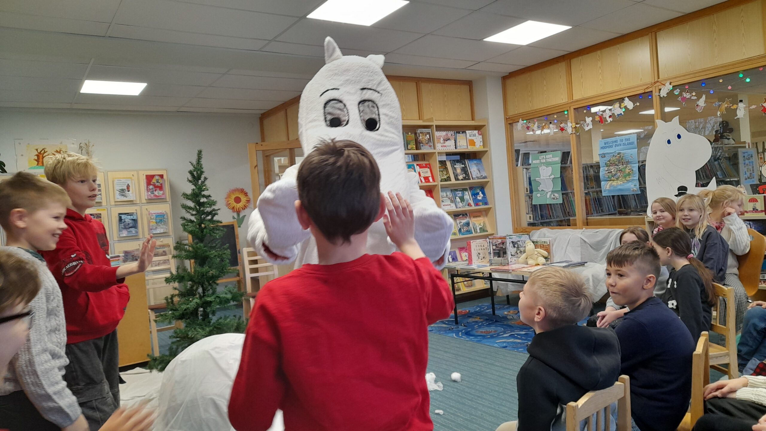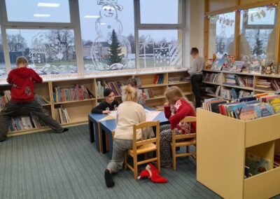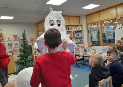 Tutvusime Tove Janssoni teostega, kuulasime Muumitrolli jutustust jõuluajast vanal ajal, lahendasime ristsõna ja õppisime raamatukogu riiulitest otsima kirjaniku nime järgi erinevaid teoseid. Peale raamatukogu külastust käisime vaatamas Rakvere teatri etendust ,,Piparkoogimehike“. Oli pikk, aga huvitav ja tegus koolipäev.